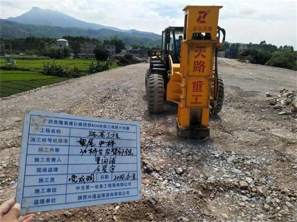 貴隆高速公路施工現(xiàn)場,隨著一陣 “噠噠噠噠”脈沖式的液壓聲響,地下便呈現(xiàn)出了數(shù)個(gè)圓餅狀的凹坑,這是貴隆項(xiàng)目總承包部的液壓夯實(shí)機(jī)正在施工作業(yè)。在試用完**臺(tái)高速液壓夯實(shí)機(jī)后,天路重工憑借出色的表現(xiàn)獲得全線認(rèn)可,截至目前,貴隆高速全線共采用四臺(tái)天路重工高速液壓夯實(shí)機(jī)。