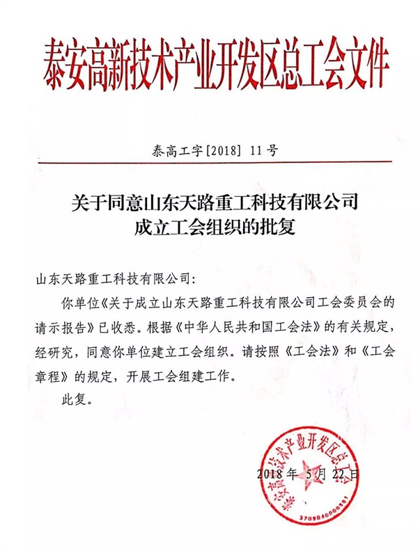 為進一步健全山東天路重工科技有限公司(以下簡稱“天路重工”)內(nèi)部各項運行機制,更好地組織引導(dǎo)服務(wù)職工和維護職工合法權(quán)益,經(jīng)泰安市高新技術(shù)產(chǎn)業(yè)開發(fā)區(qū)總工會同意,8月6日,天路重工隆重召開工會成立大會暨**屆工會會員大會,公司全體員工出席會議。