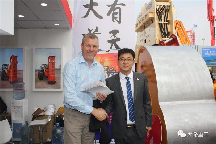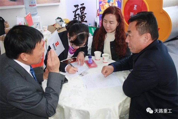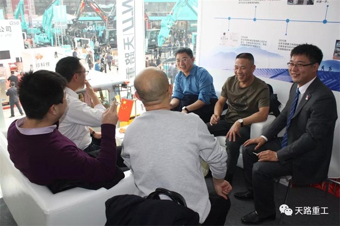 展會現(xiàn)場,天路重工展廳內外人潮涌動,熱鬧非凡,吸引了大批國內外客戶及同行前 來參觀、洽談,更有多個客戶當場簽下產品訂單,亦有多家公司對表示了天路重工產品的 高度認可,達成合作意向。