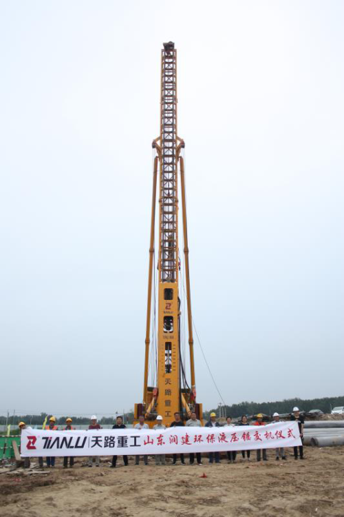 山東省首臺智能環(huán)保型液壓打樁錘在牡丹之鄉(xiāng)的菏澤試樁成功,替代柴油錘,快速穿越砂層,替代靜壓樁機(jī)!