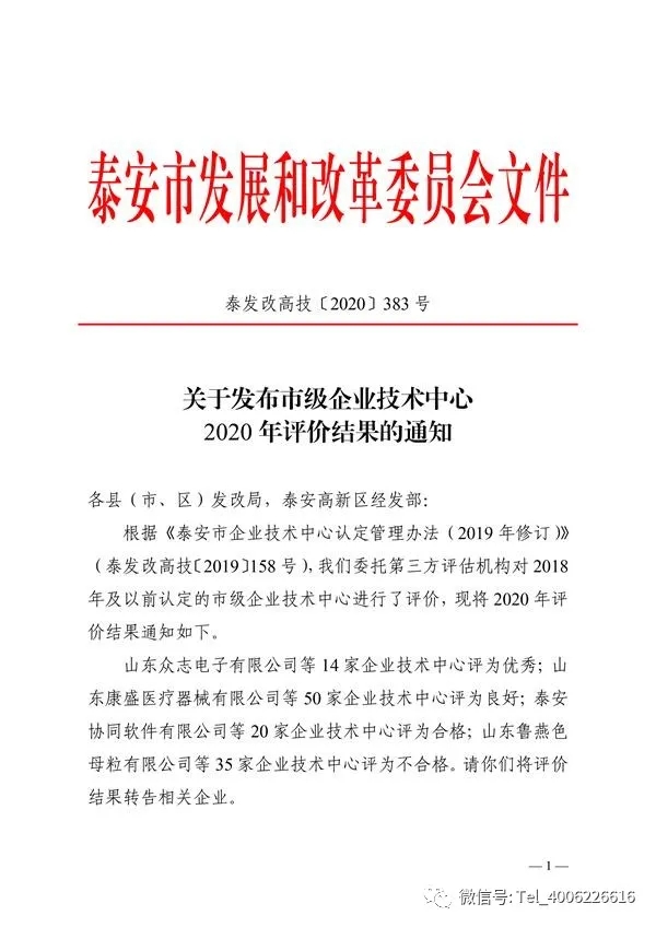 2020年12月17日,泰安市發(fā)展和改革委員會公布了2020年度泰安市企業(yè)技術(shù)中心認(rèn)定評審結(jié)果的通知,山東天路重工科技有限公司榮列其中,被認(rèn)定為市級企業(yè)技術(shù)中心,評審結(jié)果為良好。