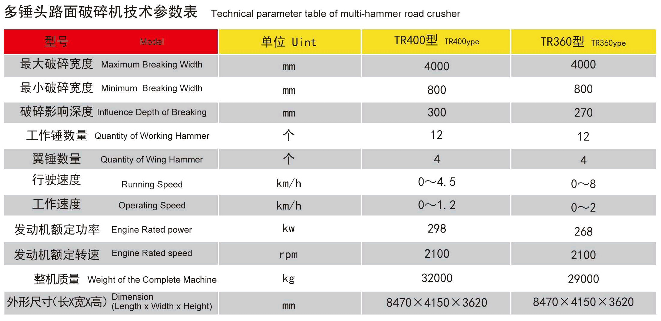 TR400/ TR360型多錘頭破碎機(jī)是水泥混凝土路面進(jìn)行碎石化技術(shù)的專用機(jī)械,對舊水泥路面打碎后,水泥路面顆粒由上而下逐漸增大,經(jīng)碾壓后,上部顆粒形成平整面,下部顆粒間形成嵌擠結(jié)構(gòu),再加鋪新的面層后,可有效強(qiáng)化路基。